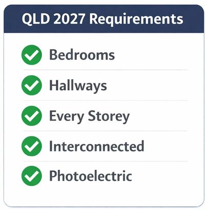 From 1 January 2027, all residential properties in Queensland must be fitted with photoelectric, interconnected smoke alarms that comply with Australian Standard AS 3786:2014. These requirements apply to homeowners, landlords and sellers.