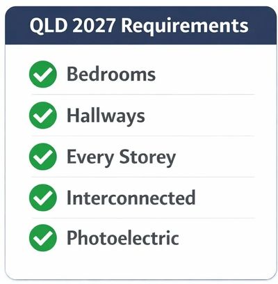 From 1 January 2027, all residential properties in Queensland must be fitted with photoelectric, interconnected smoke alarms that comply with Australian Standard AS 3786:2014.